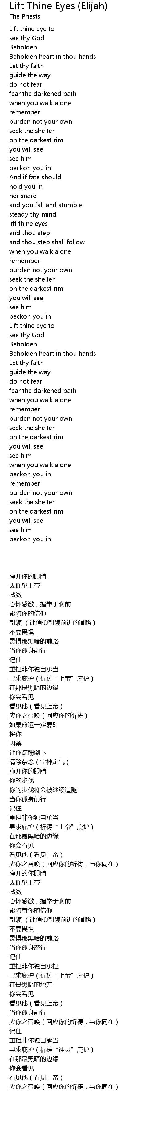 Lift thine eye to |