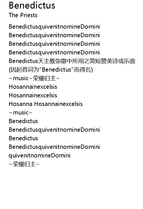 | [01:31.09] | Benedictus天主教弥撒中所用之简短赞美诗或乐曲 |