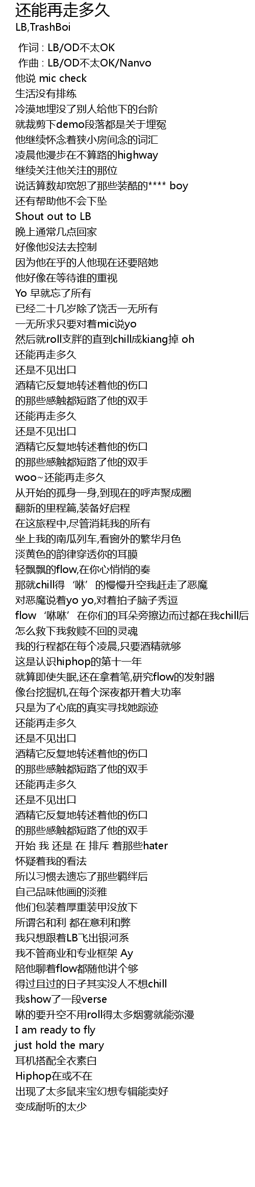 | [01:22.422] | 还能再走多久 |