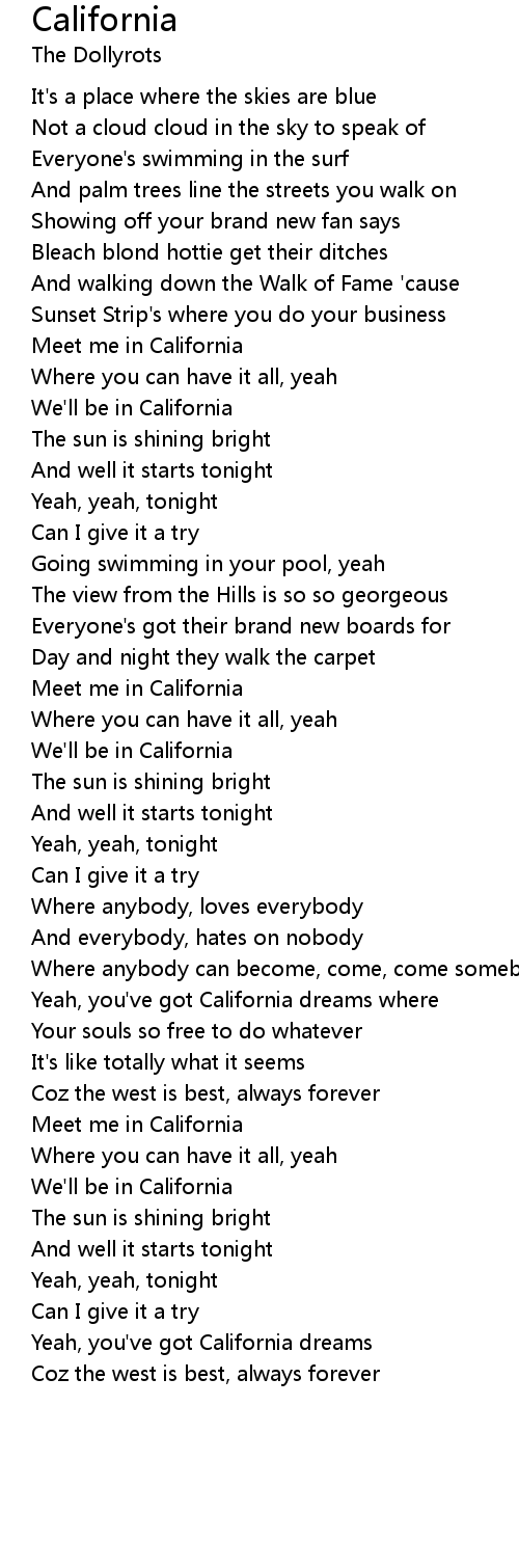Yeah, you've got California dreams |