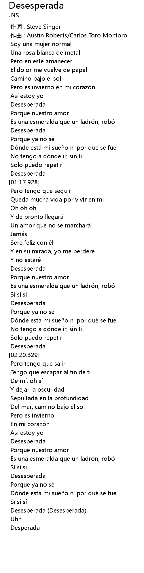 | [00:59.478] | Dó nde está mi sue o ni por qué se fue |