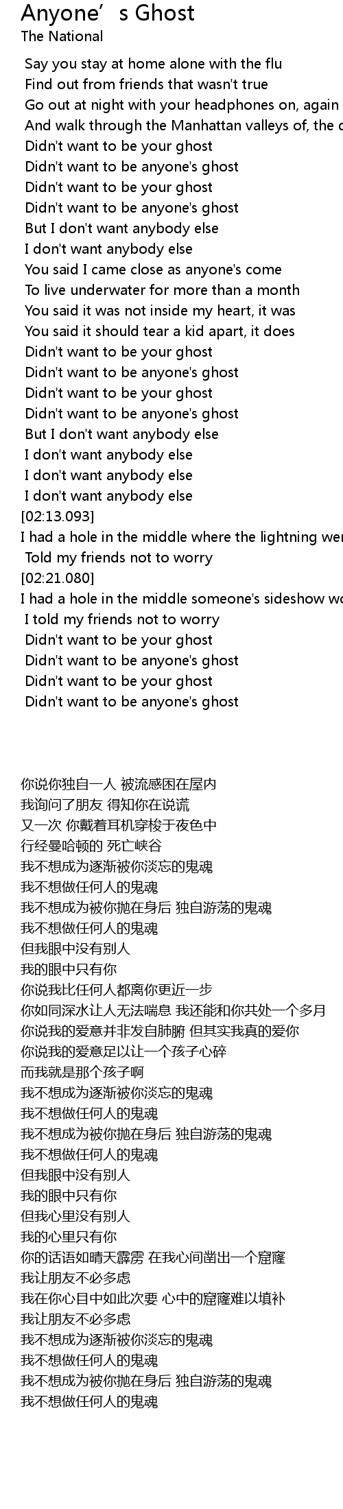 | [02:40.847] | Didn't want to be anyone's ghost |