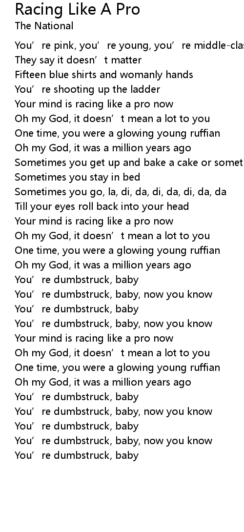| Your mind is racing like a pro now | |
