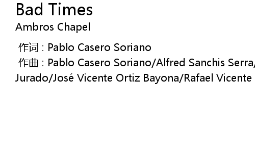 | [00:00.00-1] | zuo qu : Pablo Casero Soriano Alfred Sanchis Serra Jose Rodri guez Jurado Jose Vicente Ortiz Bayona Rafael Vicente Jerez |