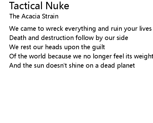 | Song | Tactical Nuke |