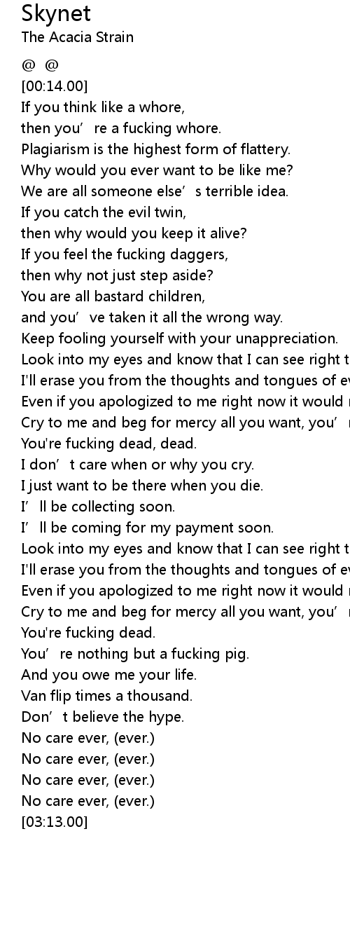 | [00:21.85] | then you' re a fucking whore. |