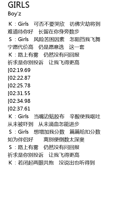 | [01:54.32] | S:Girls 想增加我分数 篇篇给扣分数 |