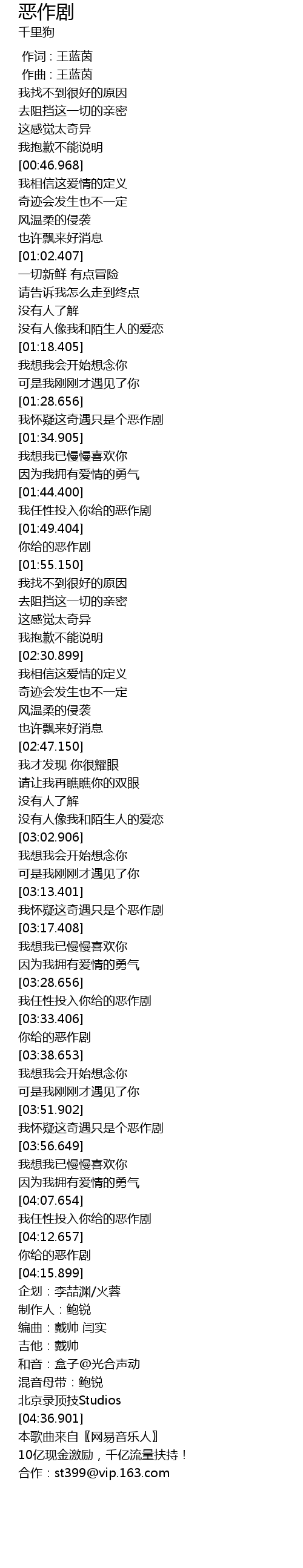 | [04:25.150] | 编曲:戴帅 闫实 |