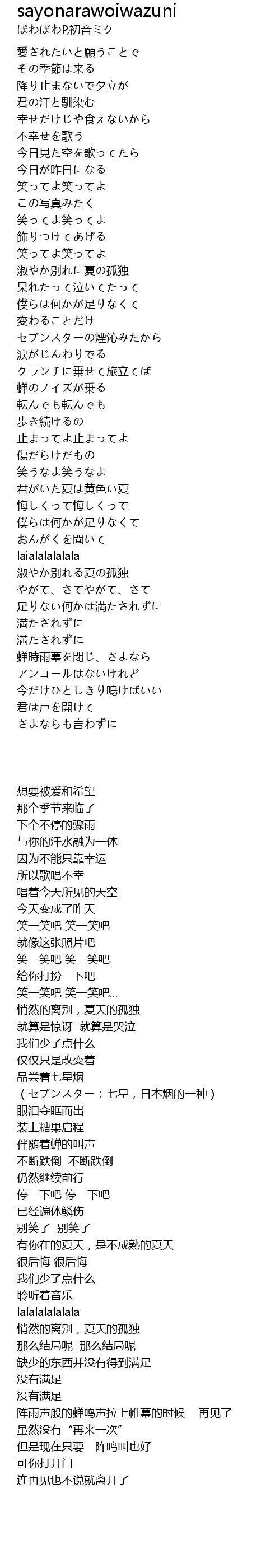 - sayonarawoiwazuni