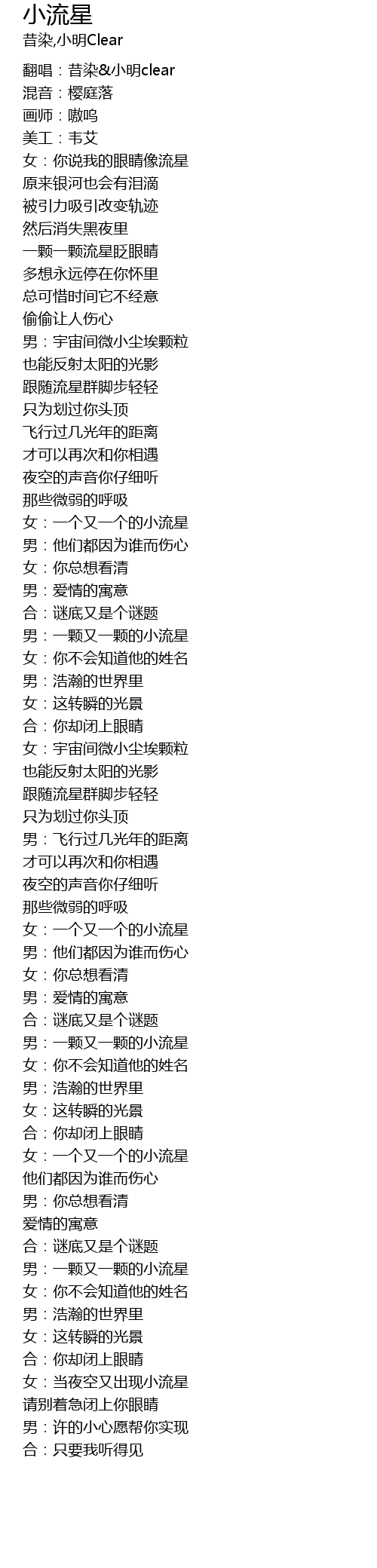 | [00:15.95] | 女:你说我的眼睛像流星 |