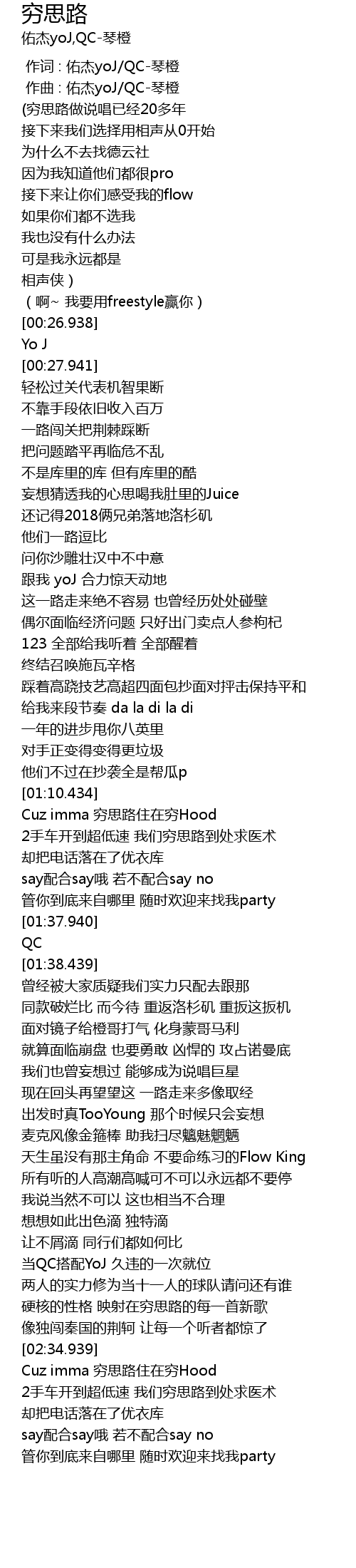 | [00:01.189] | (穷思路做说唱已经20多年 |
