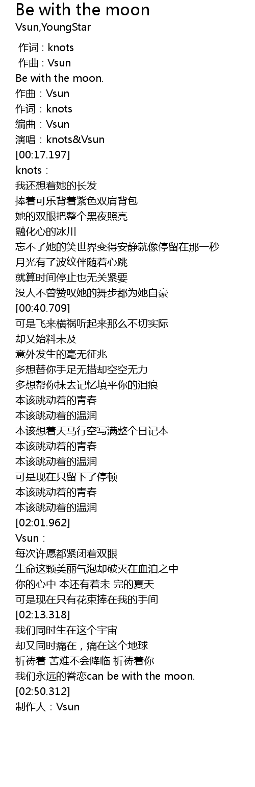 | [02:23.560] | wo men yong yuan de juan lian can be with the moon. |
