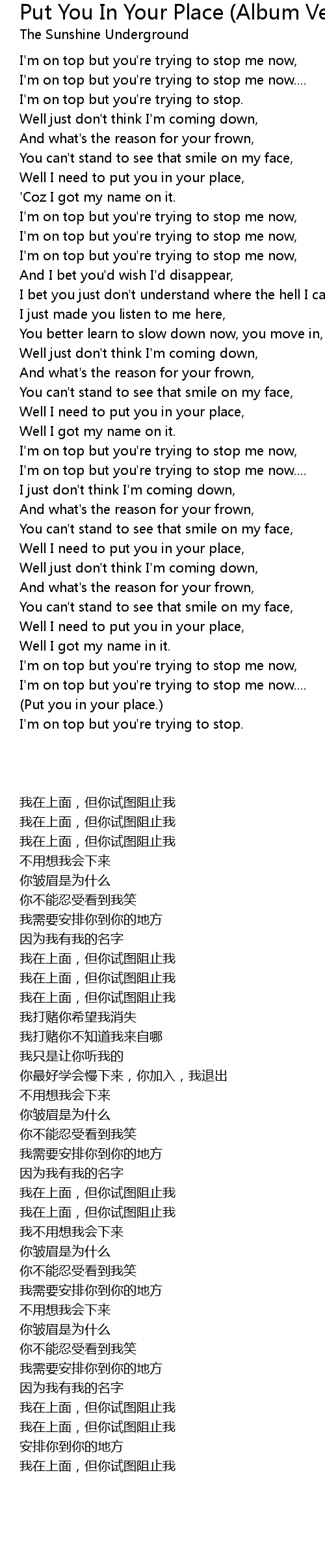Put You In Your Place (Album Version) Lyrics