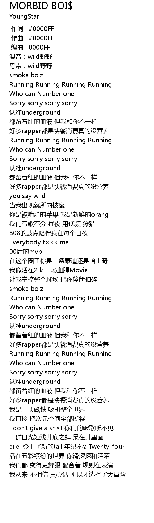 | [01:53.281] | I don' t give a sh t ni men de po ge ting bu jian |