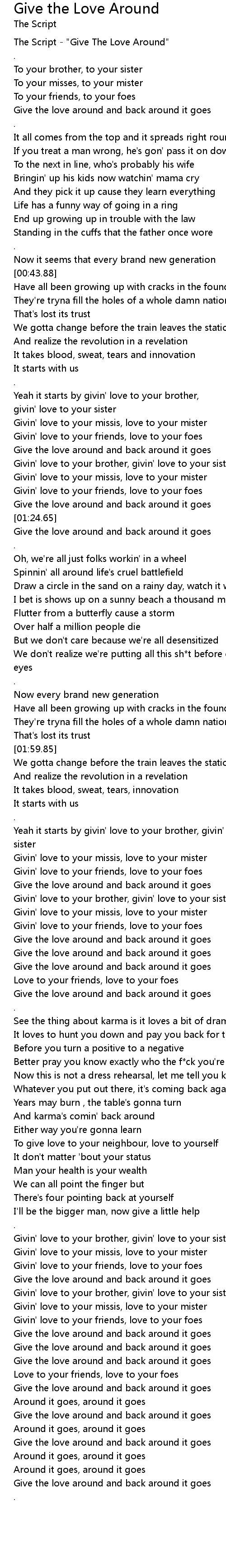 [02:11.48] Yeah it starts by givin' love to your brother, givin' love to your sister