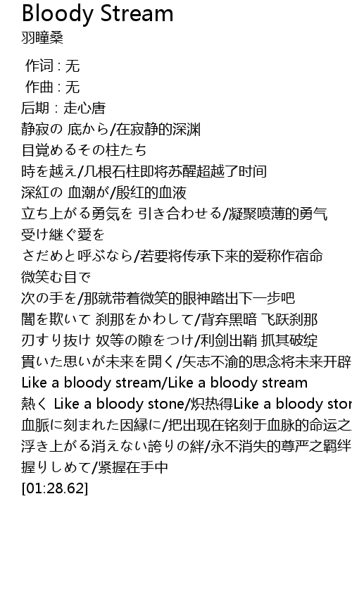 | [01:07.62] | Like a bloody stream/Like a bloody stream |