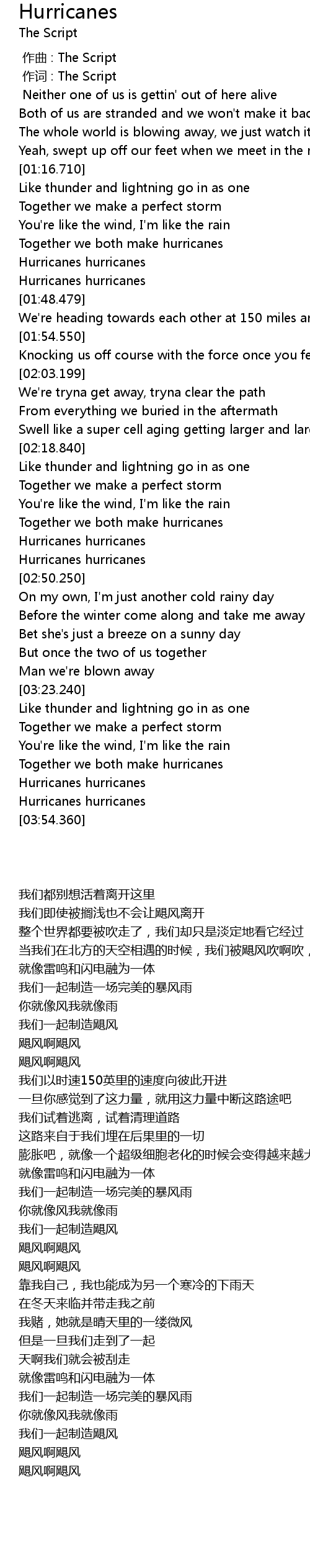 | [02:31.0] | Together we both make hurricanes |