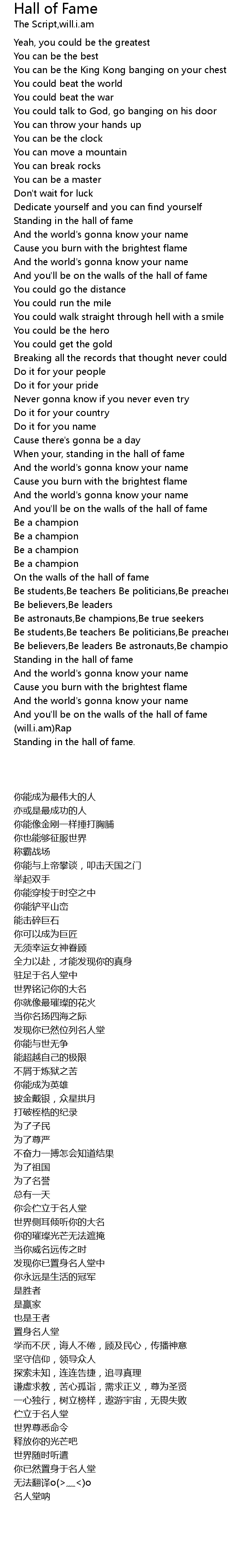 Hall of Fame Lyrics