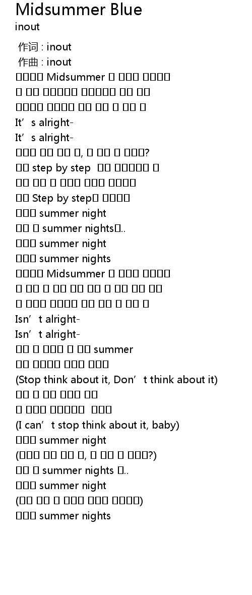 | [00:35.27] | 우리들의 Midsummer 난 너무나 뜨거워서 |