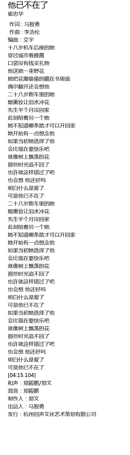 | [03:22.168] | kě shì tā yǐ bù zài le |