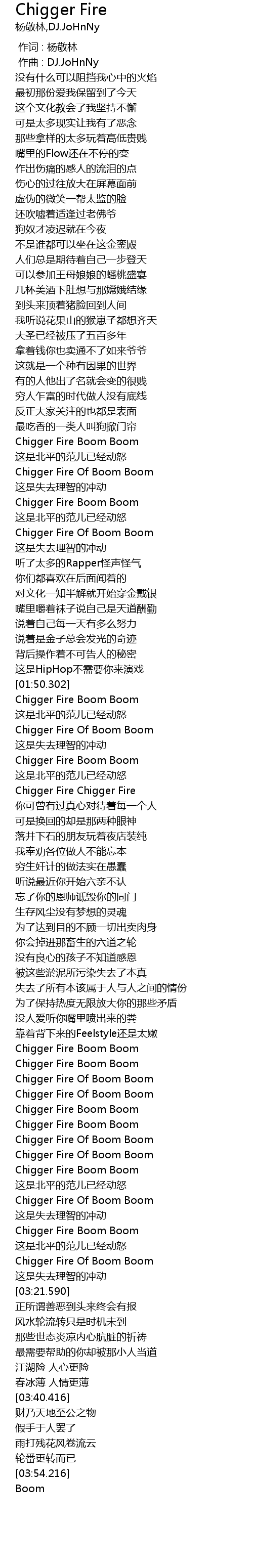 | [03:01.053] | Chigger Fire Of Boom Boom |