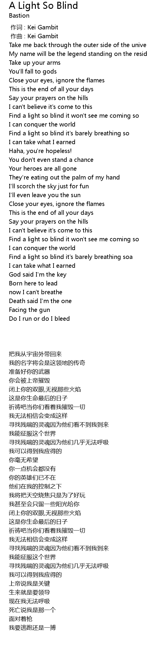 | [02:41.121] | Find a light so blind it' s barely breathing soa |