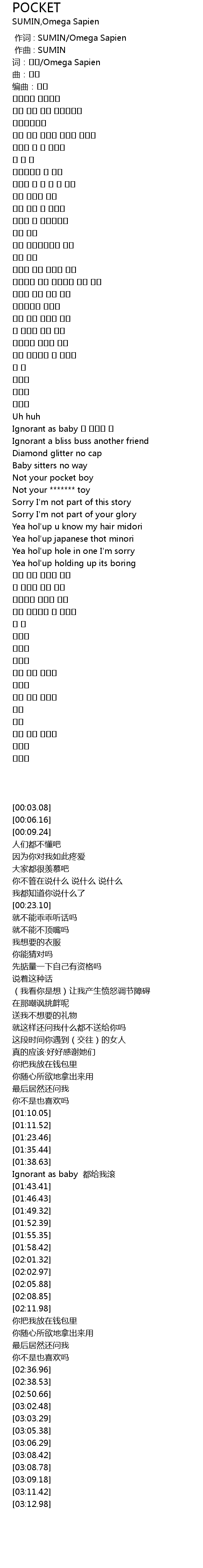 | [00:03.08] | 词:수민/Omega Sapien |