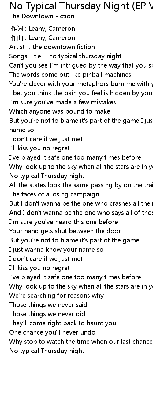| [00:05.438] | Songs Title : no typical thursday night |