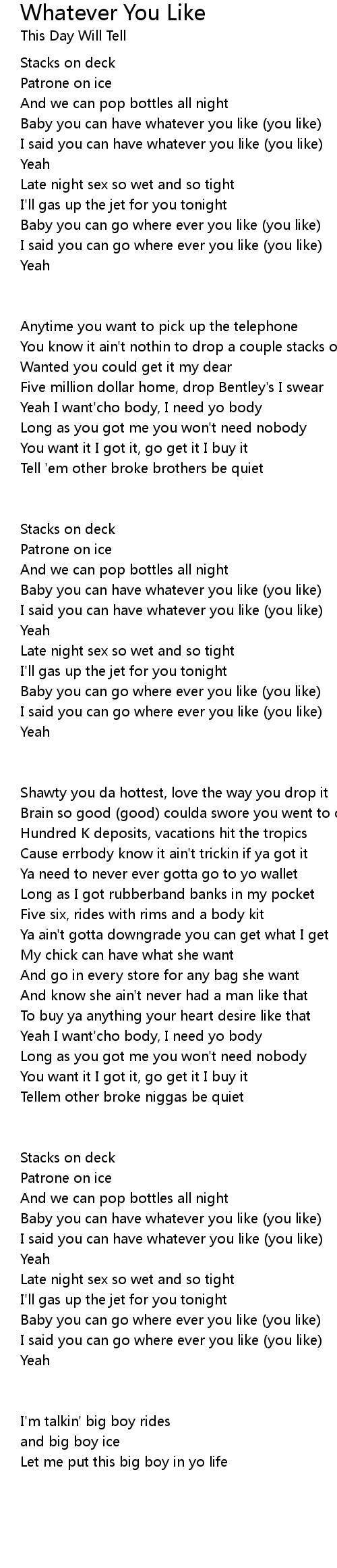 I said you can have whatever you like (you like) |