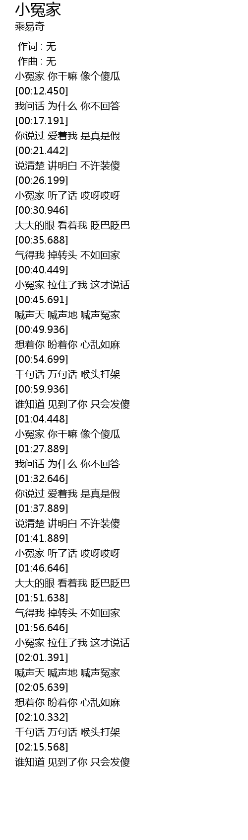 | [01:24.448] | 小冤家 你干嘛 像个傻瓜 |
