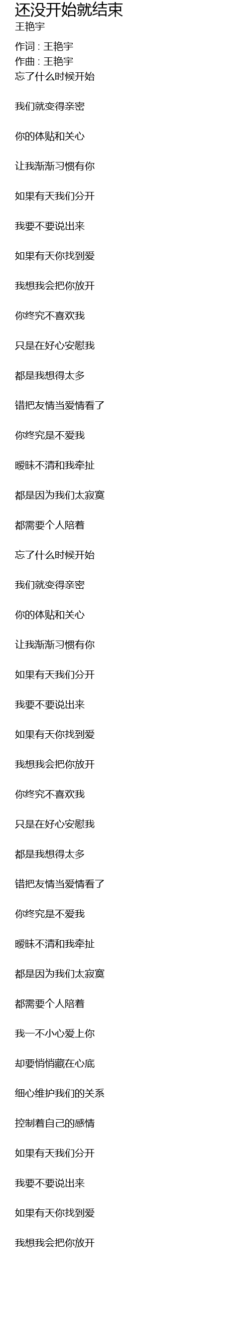 | 作词 : 王艳宇 | |