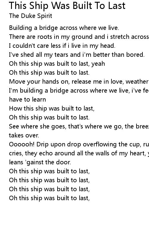 I'm building a bridge across where we live, i've fed all the hurt now i just have to learn |