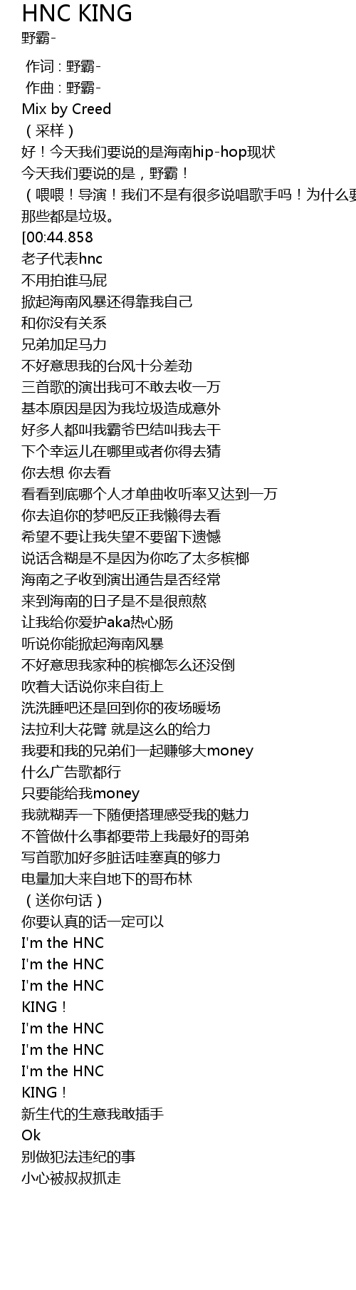 | [00:22.190] | 好!今天我们要说的是海南hip-hop现状 |