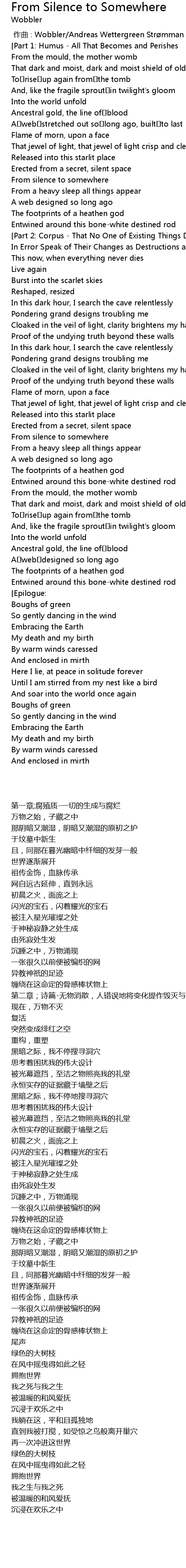 | [00:05.264][Part 1: Humus - All That Becomes and Perishes] | |