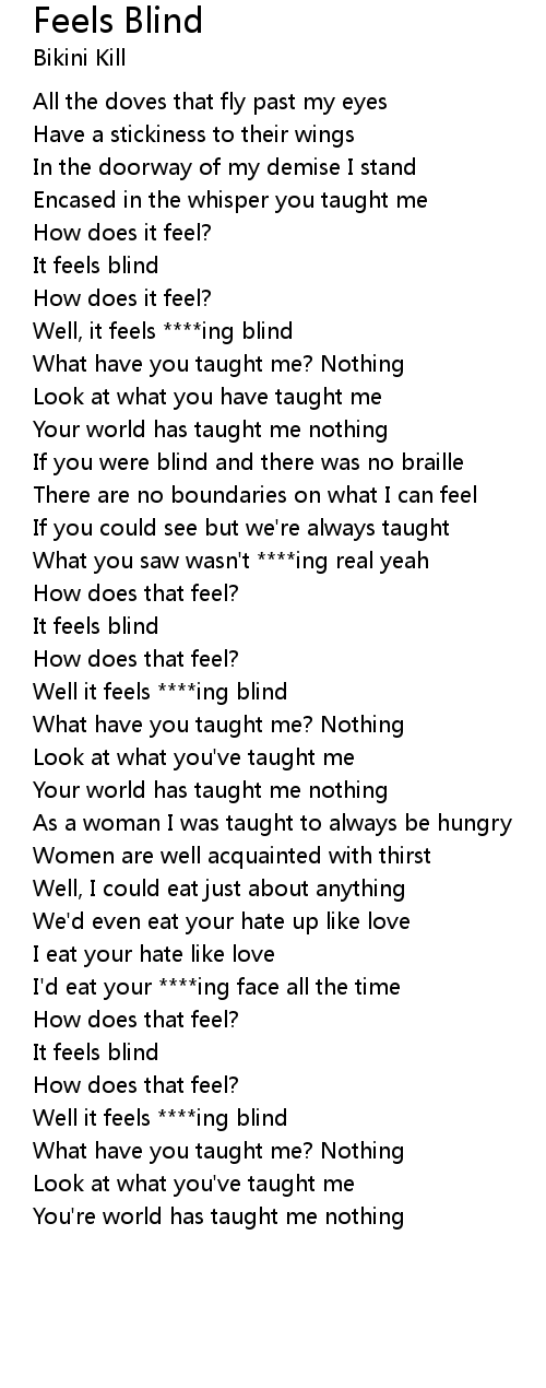 Well it feels ****ing blind |