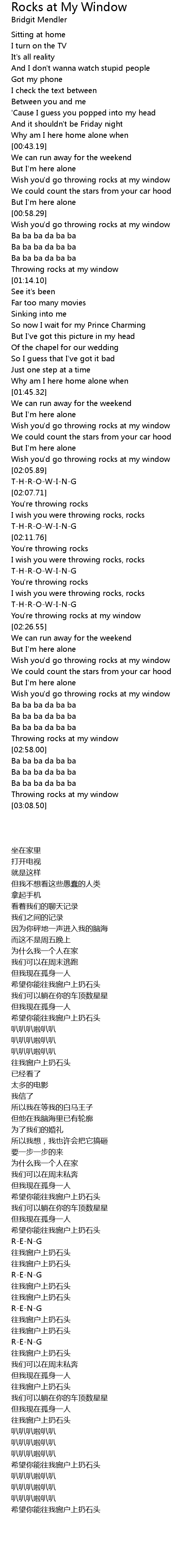 Throwing rocks at my window |