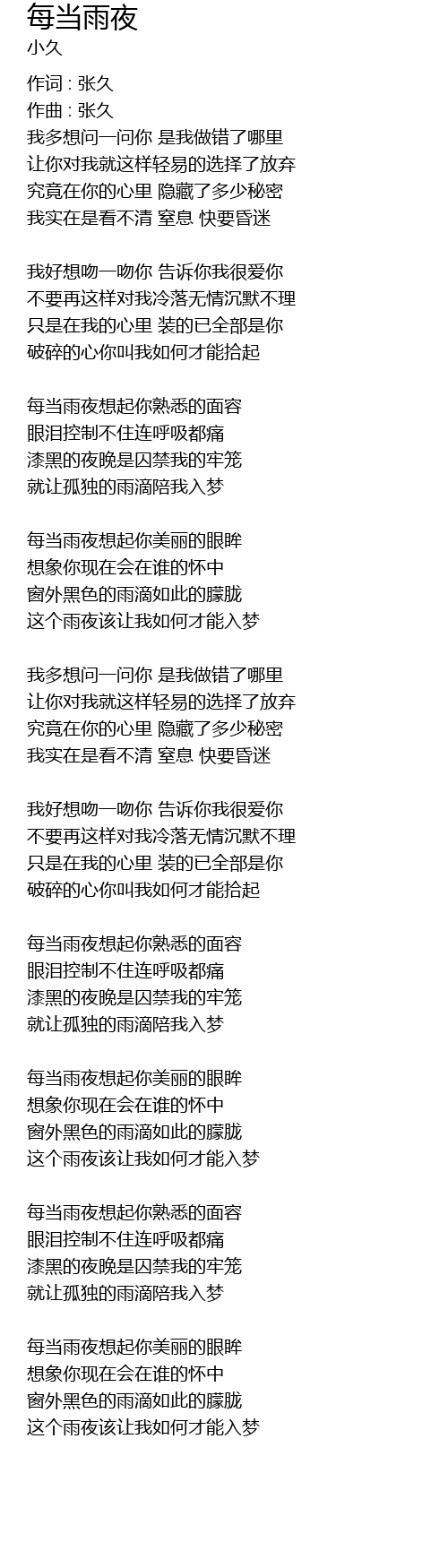 | 作词 : 张久 | |