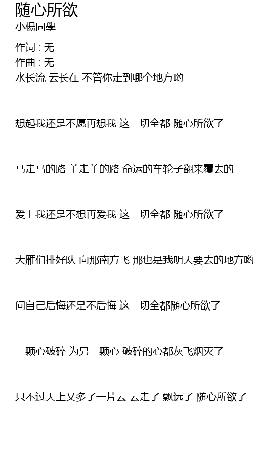 | zhi bu guo tian shang you duo le yi pian yun yun zou le piao yuan le sui xin suo yu le |