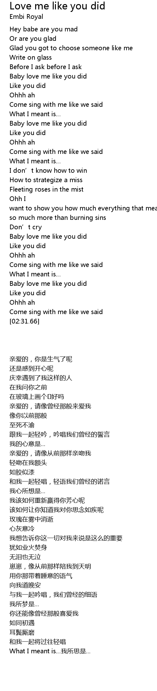 | [02:13.59] | Baby love me like you did |