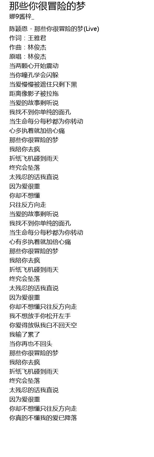 | 那些你很冒险的梦 | |