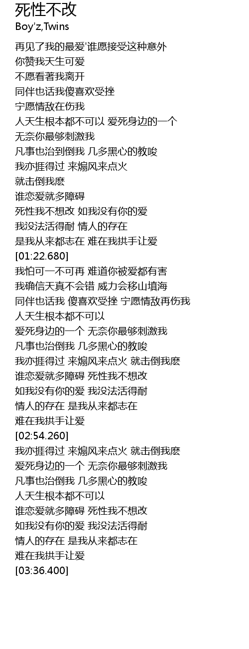 | [01:03.200] | 死性我不想改 如我没有你的爱 |