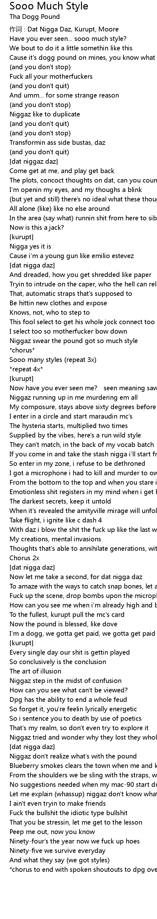 | 作词 : Dat Nigga Daz, Kurupt, Moore | |