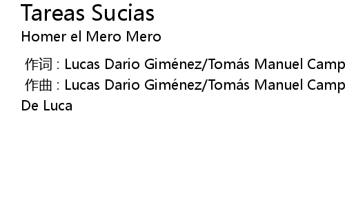 | [00:00.00-1] | 作曲 : Lucas Dario Giménez/Tomás Manuel Campos/Emiliano Sergio De Luca |