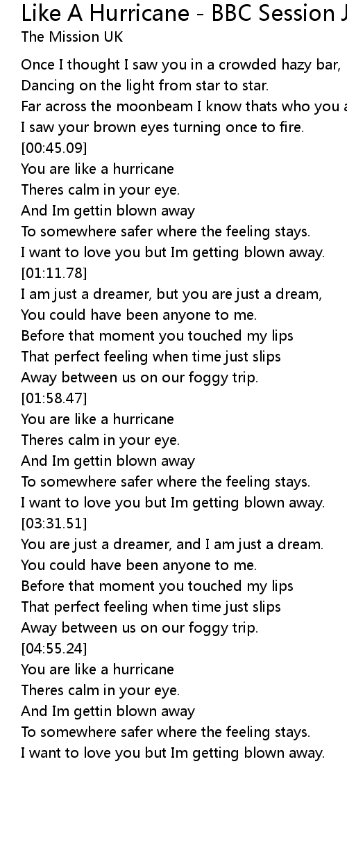 Like A Hurricane - BBC Session Janice Long 19/01/1986 Lyrics