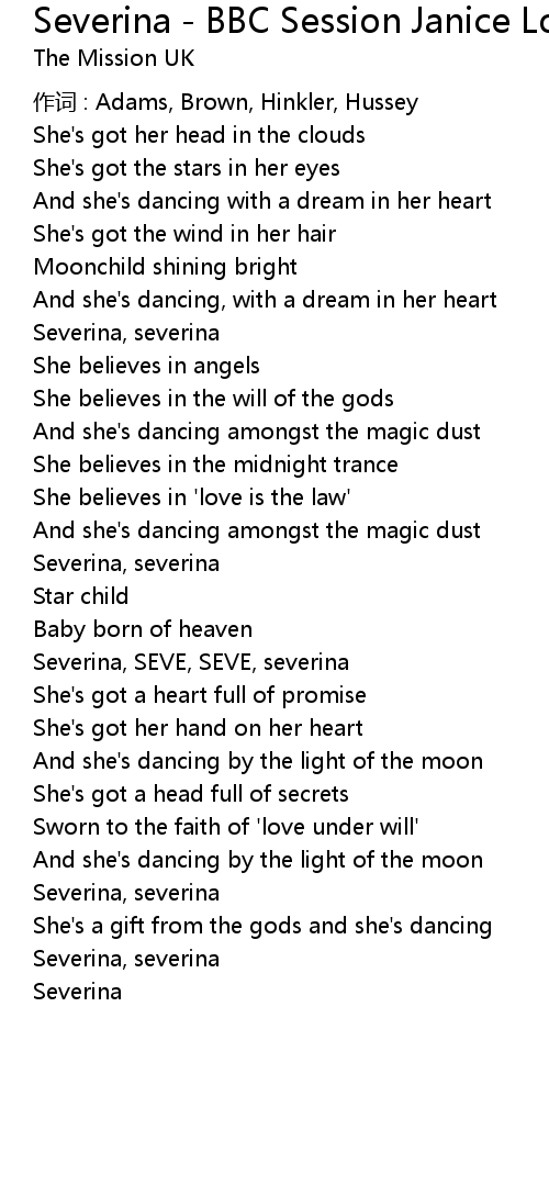 | Song | Severina - BBC Session Janice Long 19/01/1986 |