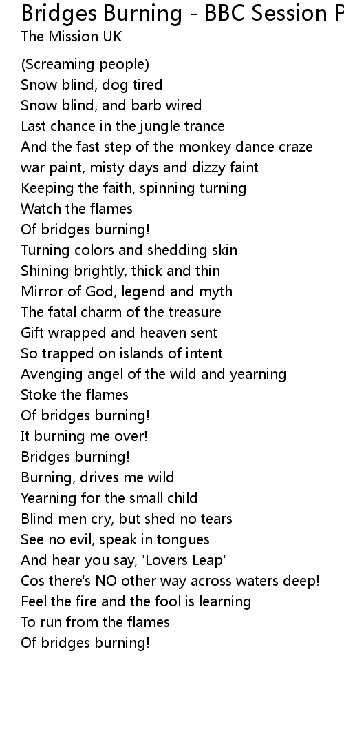 Bridges Burning - BBC Session Previously Unreleased Reading Festival 1987 Lyrics