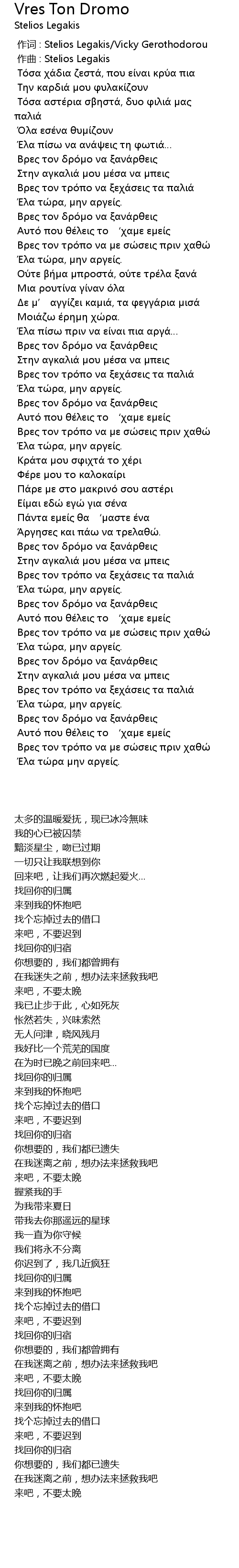 作词 : Stelios Legakis/Vicky Gerothodorou |