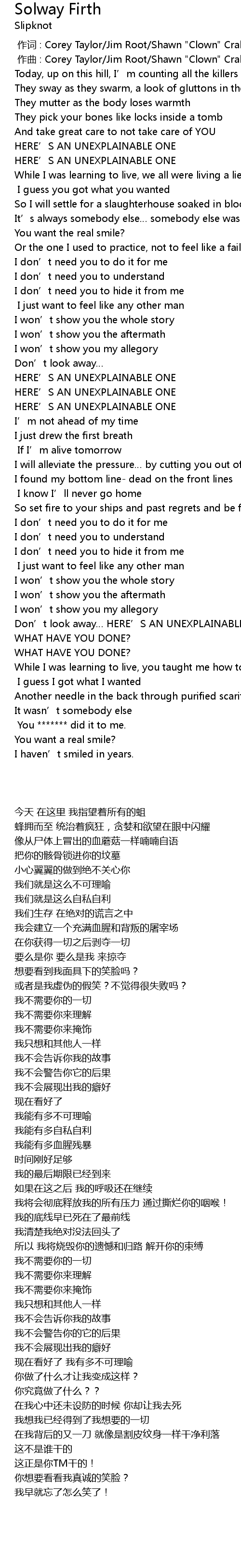 | [00:01.000] | zuo qu : Corey Taylor Jim Root Shawn " Clown" Crahan |