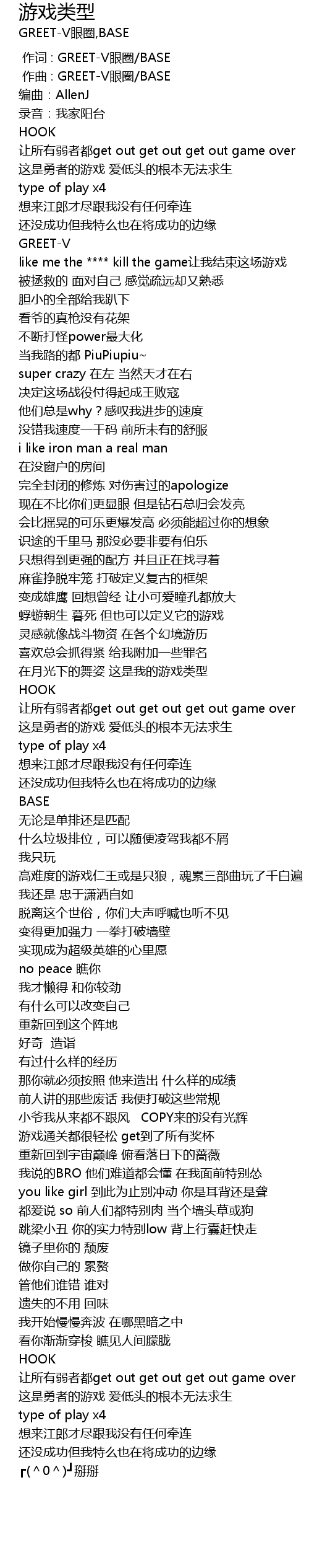 | [00:11.583] | rang suo you ruo zhe dou get out get out get out game over |