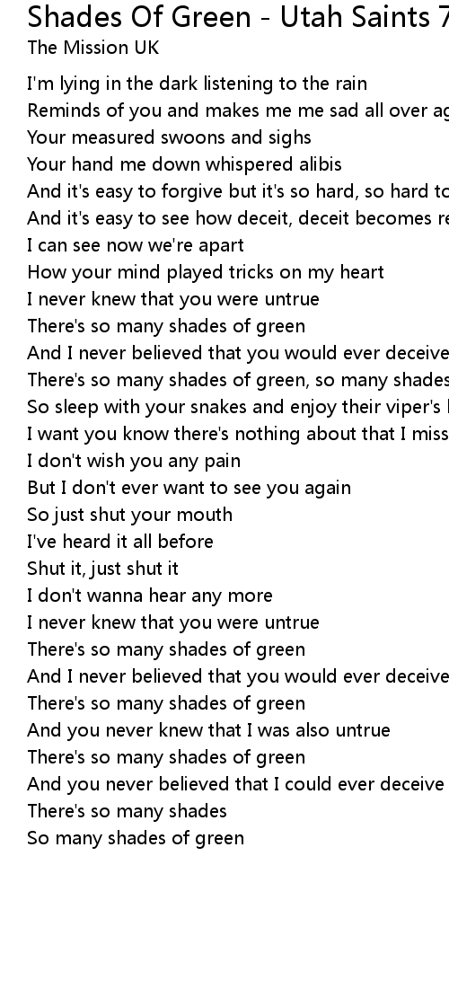 There's so many shades of green, so many shades of green |